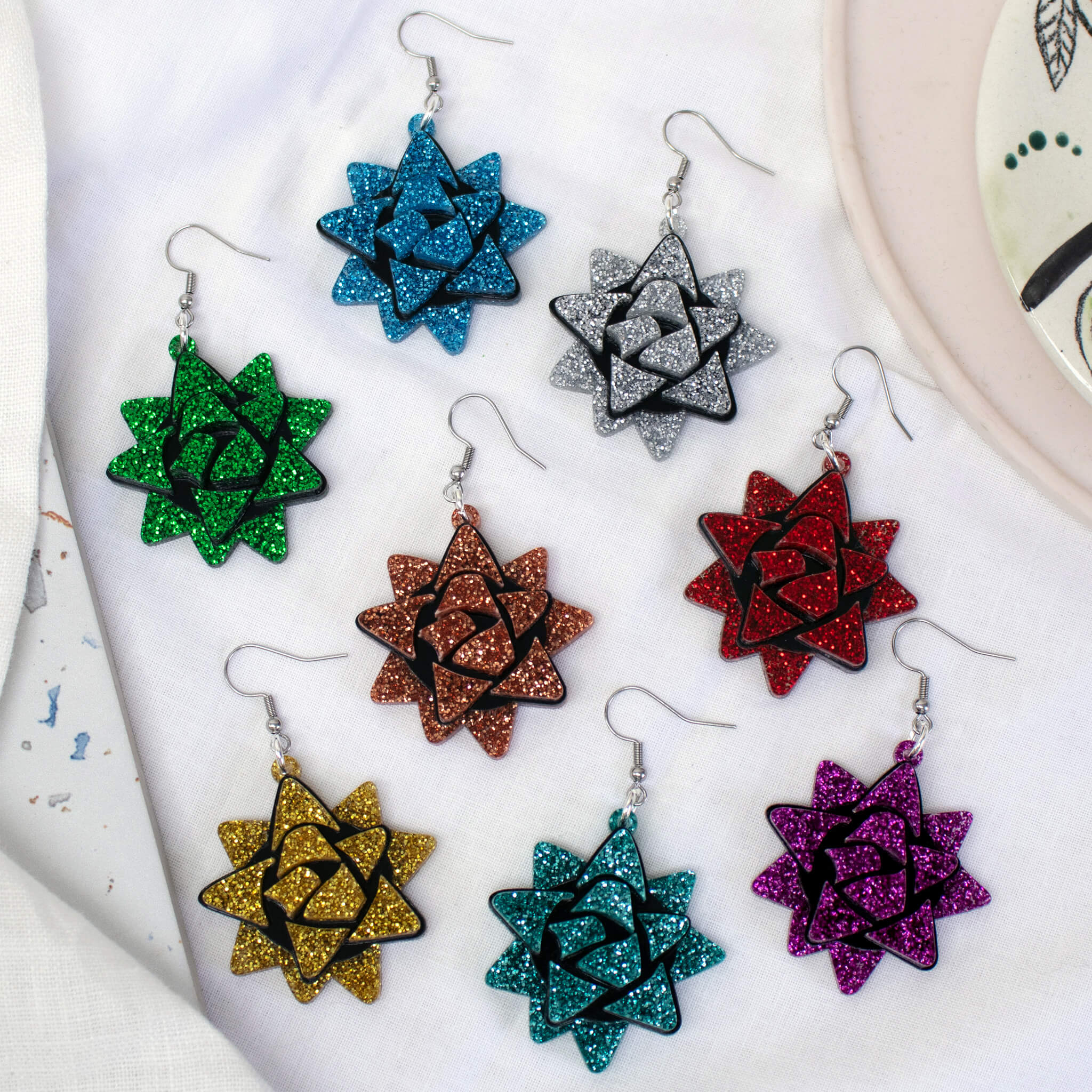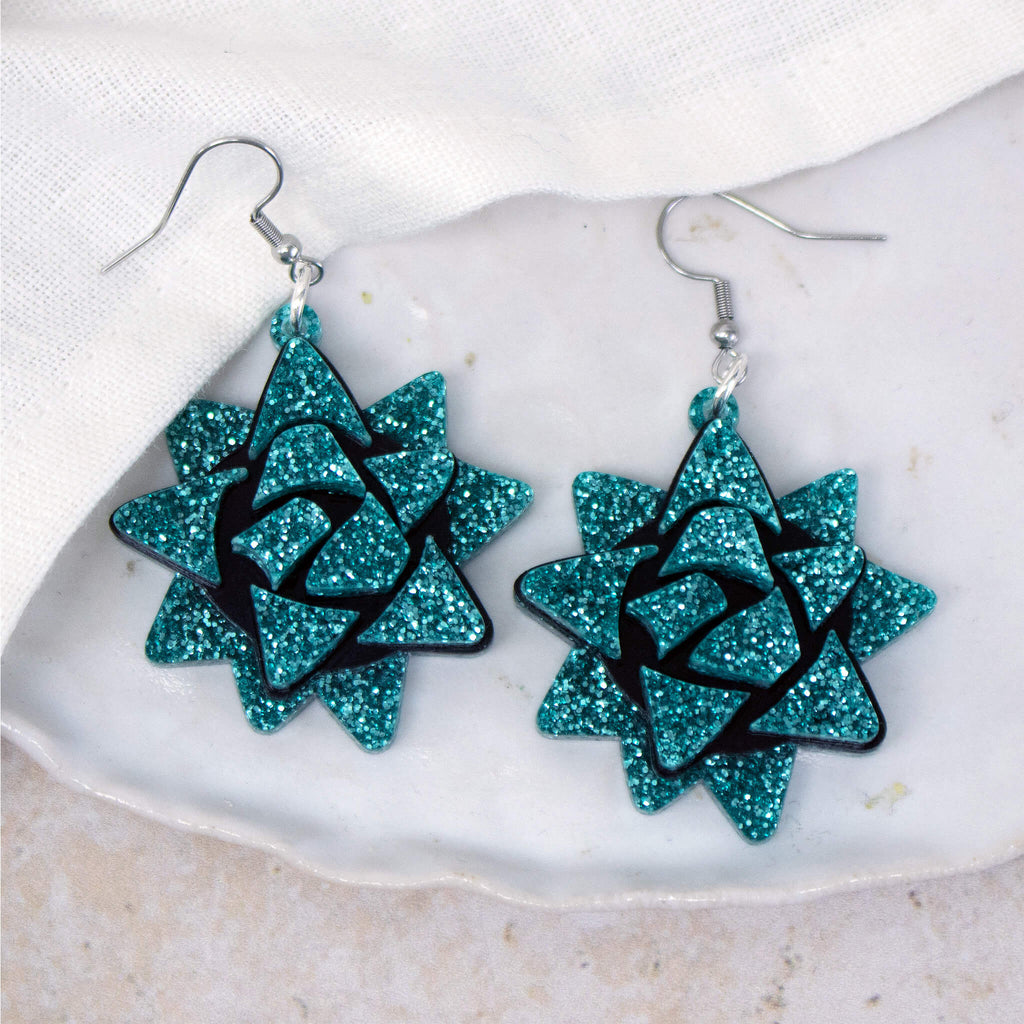 Made from zero waste acrylic, there are 8 different coloured glitters to choose from, so you can bag a matching pair or if you just can’t commit to one colour, you can mix and match and choose a different colour for each ear!